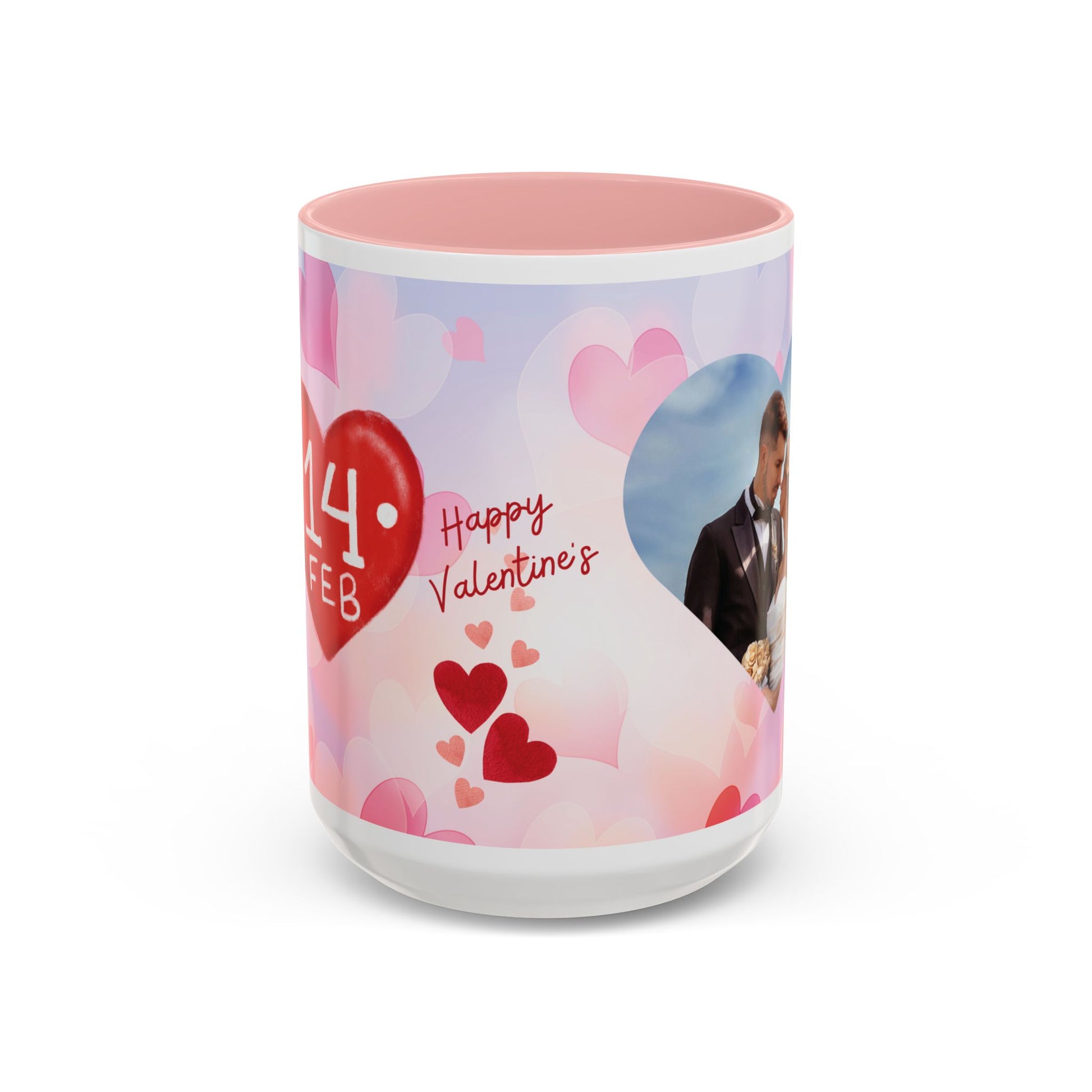 Celebrate love with this beautifully designed Valentine's Day mug set. Featuring a bold "14 FEB" heart design and a customizable photo mug framed in romantic hearts, this duo is perfect for couples, newlyweds, or anyone cherishing a special moment together.